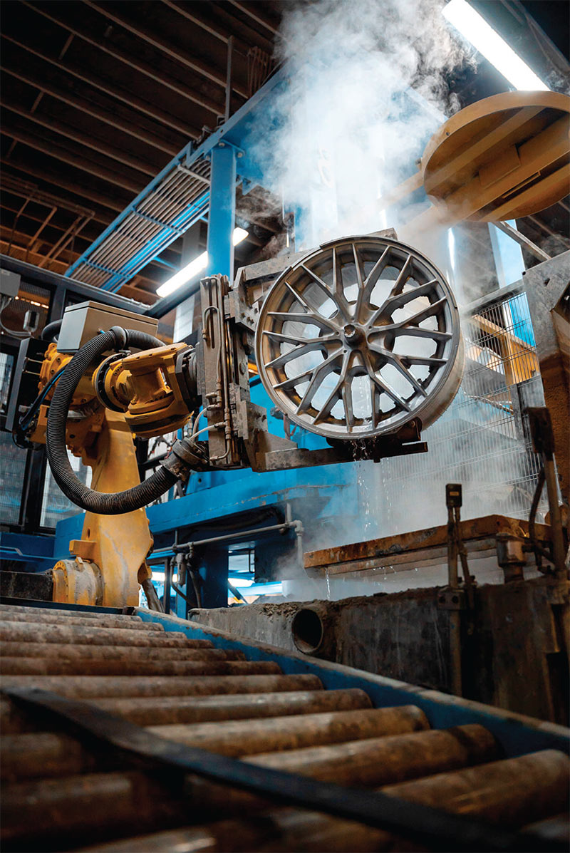 Plná produkce se věnuje gravitačnímu tlakovému lití kol.